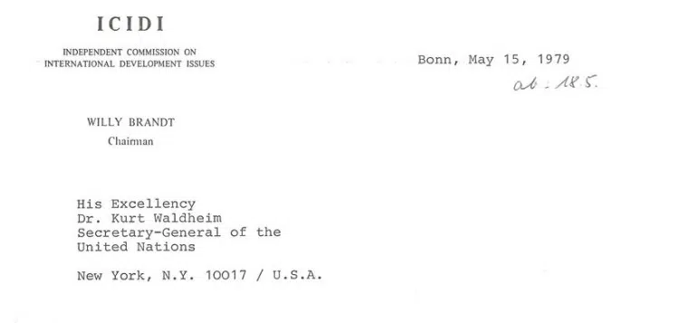 Skriv fra Willy Brandt til FN-generalsekretær Kurt Waldheim, 15. mai 1979