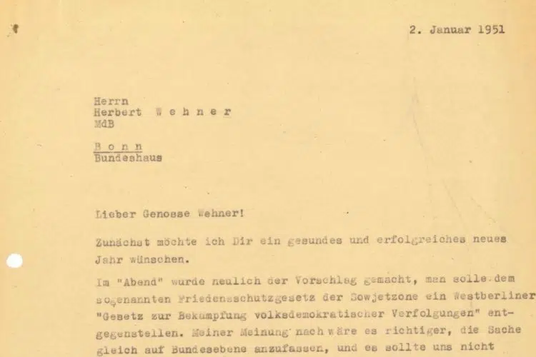 Skriv fra Willy Brandt til Herbert Wehner, 2. januar 1951